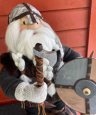 Vi har en liten Kaupang på kaia, - en liten vikingbutikk i lokalene til Lensvik Landhandel på Lensvik kai.