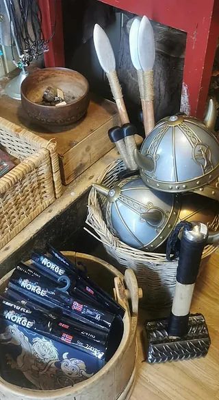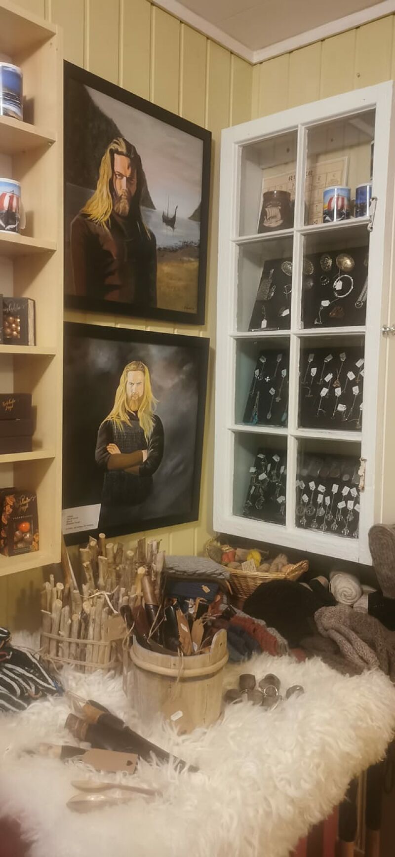Vi har en liten Kaupang på kaia, - en liten vikingbutikk i lokalene til Lensvik Landhandel på Lensvik kai.