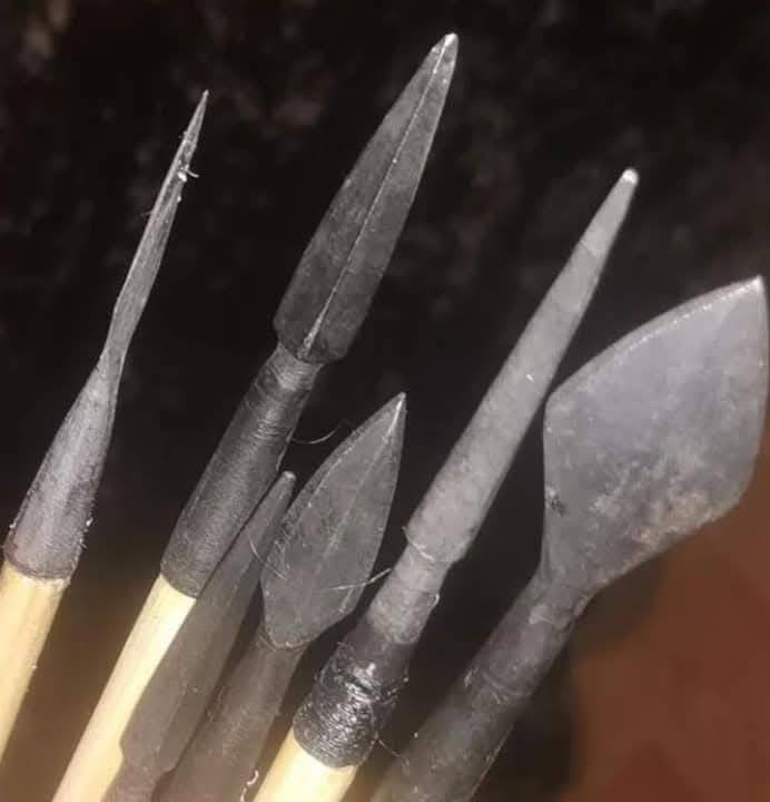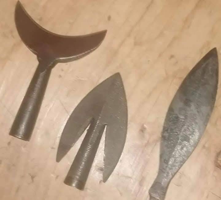 - Våpen. Ulike historiske buer. Sverd, spyd, økser, kniver, skjold.