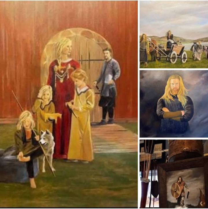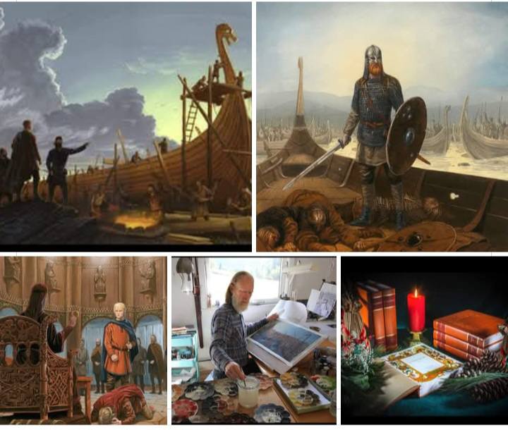 Benedikte levendegjør vikingtiden for oss gjennom sine vakre malerier. Bildene er også for salg. - Trykk fra Flatøybok. av Anders Kvåle Rue